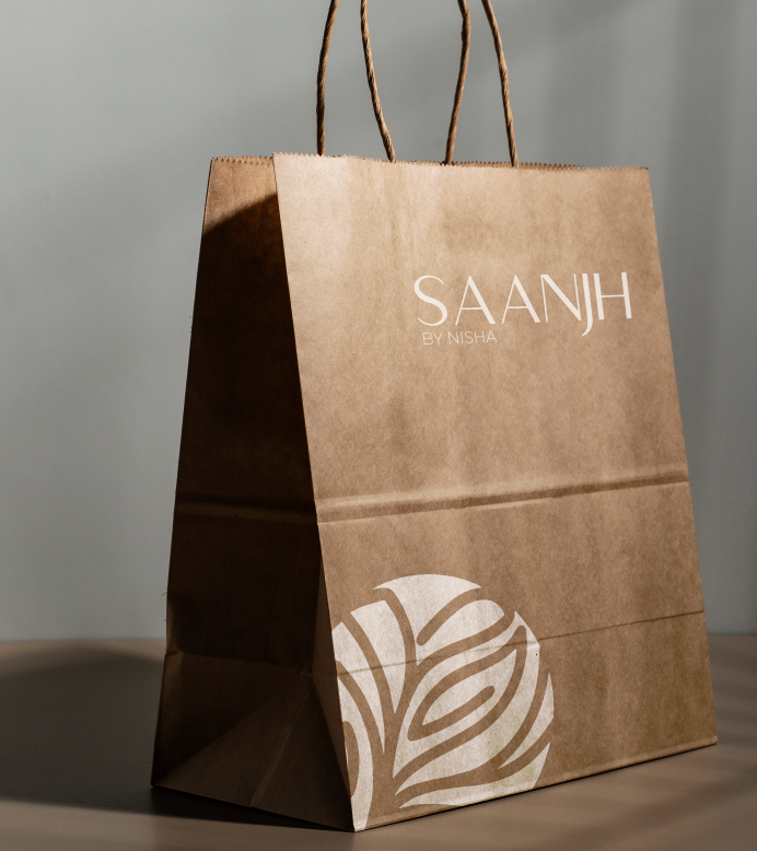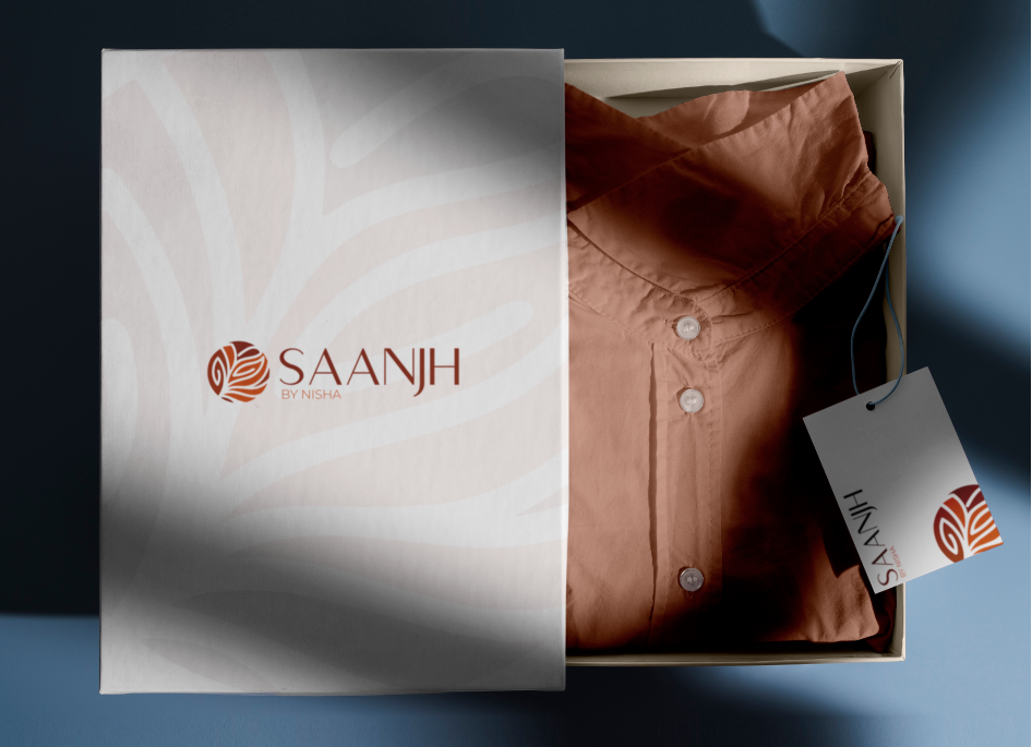 The logo is not just an emblem; it symbolizes ‘SAANJH’s’ values. Crafted with a vision for sustainable men’s fashion, it merges sophistication with environmental consciousness. We selected earthy tones to represent our commitment to nature, while abstract shapes of leaves were artfully incorporated to echo our brand’s connection to the environment.