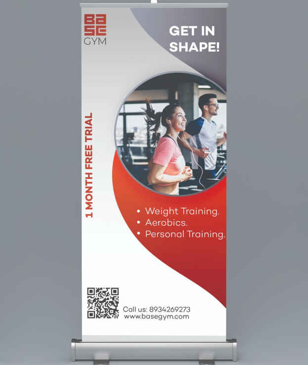 Captivating standee banner for Base Gym, blending fitness motivation and aesthetics seamlessly.